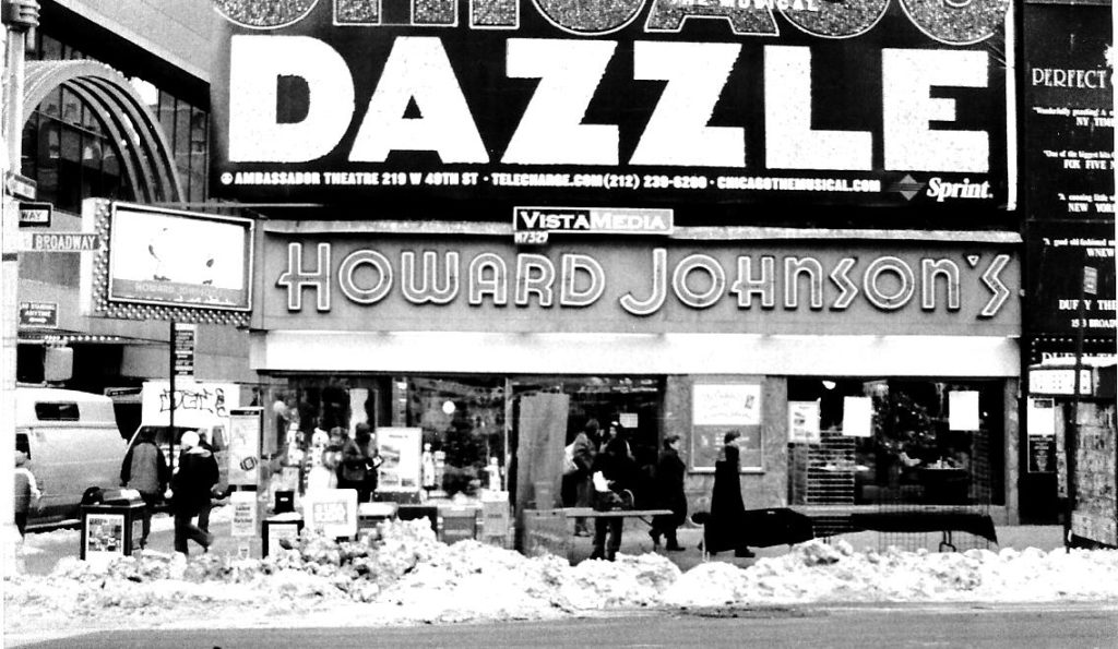 The Hojo’s in Times Square, shortly before it closed and gave way to a re-development of luxury wares. One of the few Howard Johnson’s restaurants that did not have the iconic, orange roof.